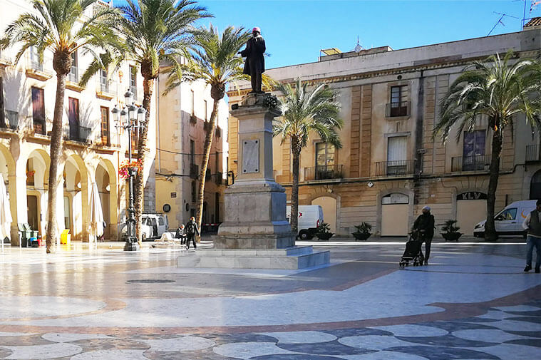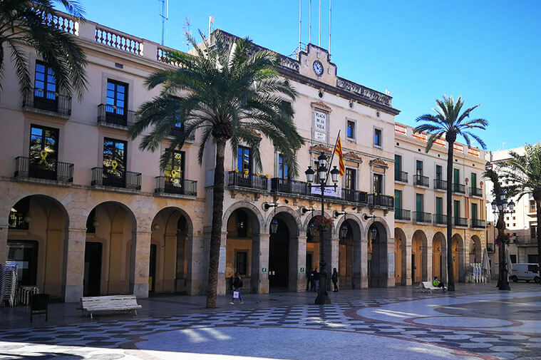 És el centre neuràlgic de Vilanova i la Geltrú, seu de l’Ajuntament i escenari de qualsevol acte cultural, festiu o polític de la ciutat. Arreu de Catalunya trobareu molt pocs indrets que concentrin tanta influència indiana com aquesta plaça. De planta rectangular i envoltada d’arcades i palmeres ens trasllada de seguida a l’arquitectura colonial. Tant és així, que ha estat escenari de spots publicitaris de tot tipus on ha representat ser una plaça de qualsevol indret de l’Amèrica Central. Pels més curiosos, el mosaic del terra en forma de petxines en blanc i negre és molt recent, del 1970 i, per tant, no és un dels elements indians que podem destacar. L’arquitecte original de la plaça de la Vila va ser Francesc de Paula del Villar, qui va iniciar les obres de la Sagrada Família abans que un tal Gaudí li prengués la batuta.